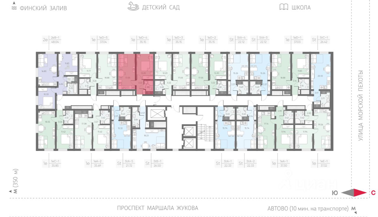 Продается 1-комнатная квартира в ЖК "Морская миля" на 5 этаже. Общая площадь составляет 35.15 кв. м. Квартира с чистовой отделкой. Жилой комплекс "Морская миля" располагается по адресу Санкт-Петербург, Красносельский.