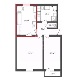 Комната общей площадью 15 кв.м. имеет следующие характеристики:
