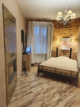 В главной спальне доминирует и создаёт романтичную атмосферу дореволюционного Петербурга роскошный дровяной камин.
