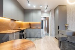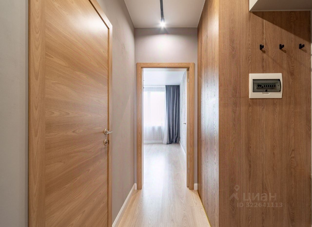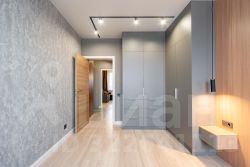 Ремонт выполнен в нейтральных, современных тонах: светлые стены, качественное напольное покрытие, встроенные светильники и мягкая подсветка создают комфортную атмосферу.