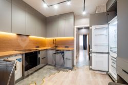 — встроенная кухня с варочной панелью, духовым шкафом, посудомоечной машиной, холодильником и стиральной машиной,