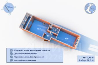 Однокомнатная квартира площадью 36,5 м² расположена на 5 этаже современного жилого комплекса.