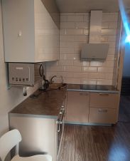 Одной из особенностей квартиры является возможность установки на кухне полноценного дивана без ущерба в организации свободного пространства.