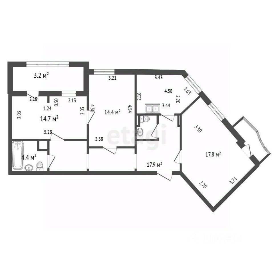 Комнаты 14,7 м2 / 14,4 м2 /17,5 м2