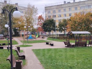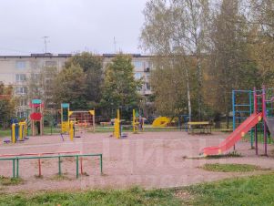 Во дворе коробка для хоккея и детская площадка.