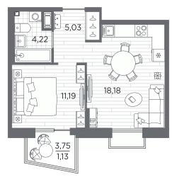 Просторная 1-комн. квартира с отделкой в ЖК "RESPECT" на 2 этаже. Общая площадь: 39.75 кв.м. Высота потолков 2.7 м.