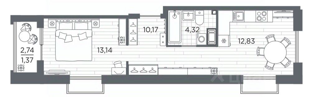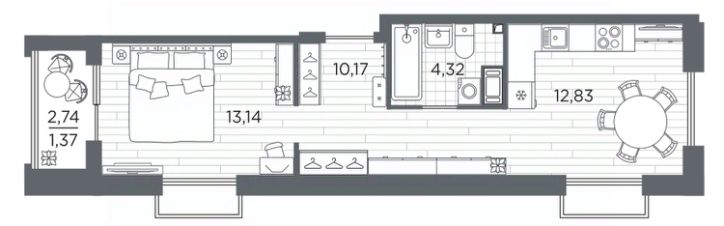 Однокомнатная квартира с предчистовой отделкой в ЖК "RESPECT" на 3 этаже. Общая площадь: 41.83 кв.м. Высота потолков 2.7 м.