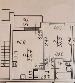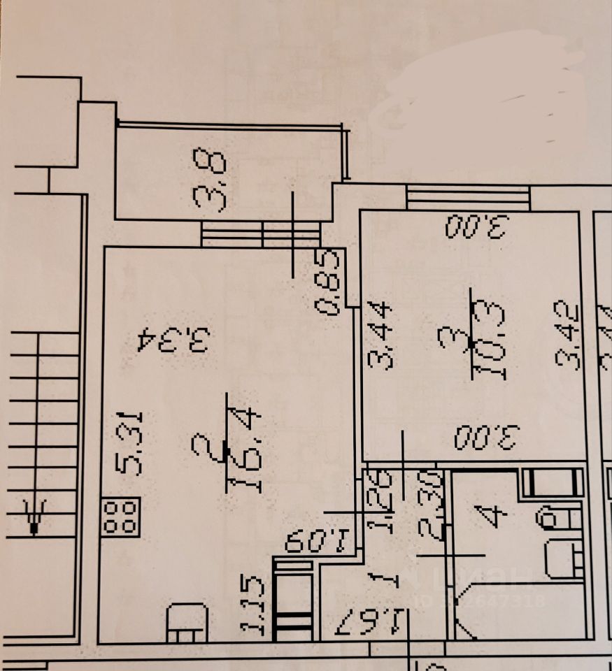 Общая площадь 33.3 м²+ утеплённый балкон 3.8 м²