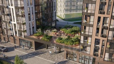 На эксплуатируемой кровле на уровне первого этажа в домах 1 и 4 будут обустроены общественные видовые террасы.