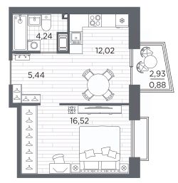 Продается однокомнатная квартира с предчистовой отделкой в ЖК "RESPECT" на 7 этаже. Общая площадь: 39.1 кв.м., жилая: 16.52 кв.м., площадь просторной кухни-столовой: 12.02 кв.м. Все окна выходят на одну сторону. В квартире один балкон, один совмещенный санузел. Высота потолков 2.7 м.