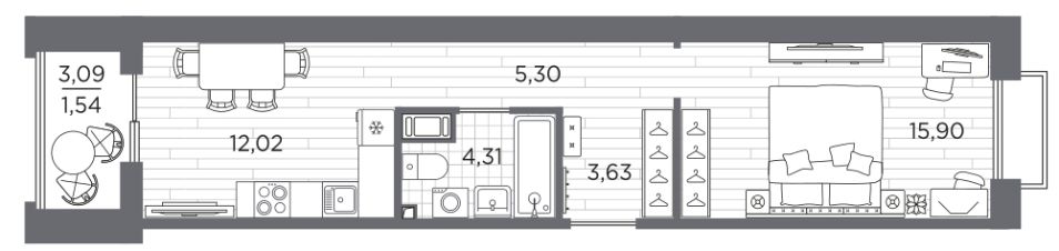 Однокомнатная квартира с предчистовой отделкой в ЖК "RESPECT" на 8 этаже. Общая площадь: 42.705 кв.м., жилая: 15.9 кв.м., площадь просторной кухни-столовой: 12.02 кв.м. Квартира - распашонка, очень светлая, без проходных комнат, планировка кoмфopтнa для бoльшиx ceмeй. В квартире один балкон, один совмещенный санузел. Высота потолков 2.7 м.