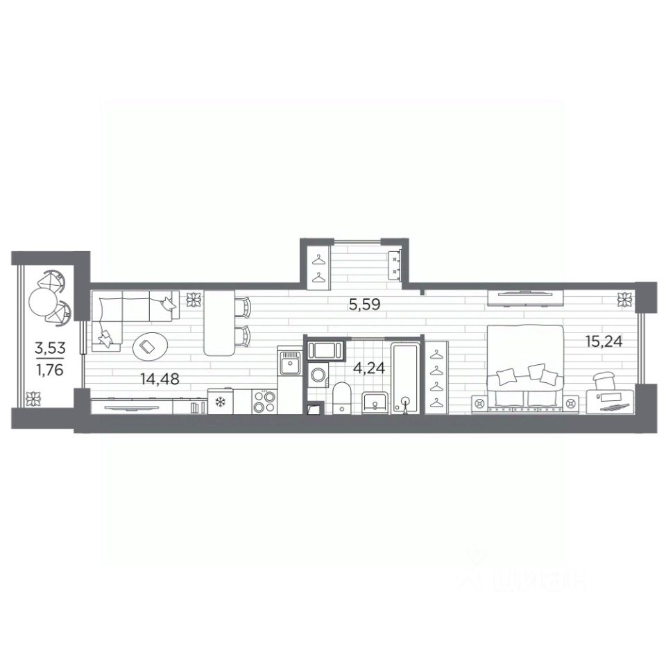 Однокомнатная квартира с отделкой в ЖК "RESPECT" на 4 этаже. Общая площадь: 41.314 кв.м., жилая: 15.24 кв.м., площадь просторной кухни-столовой: 14.48 кв.м. Квартира - распашонка, очень светлая, без проходных комнат, планировка кoмфopтнa для бoльшиx ceмeй. В квартире один балкон, один совмещенный санузел. Высота потолков 2.7 м.