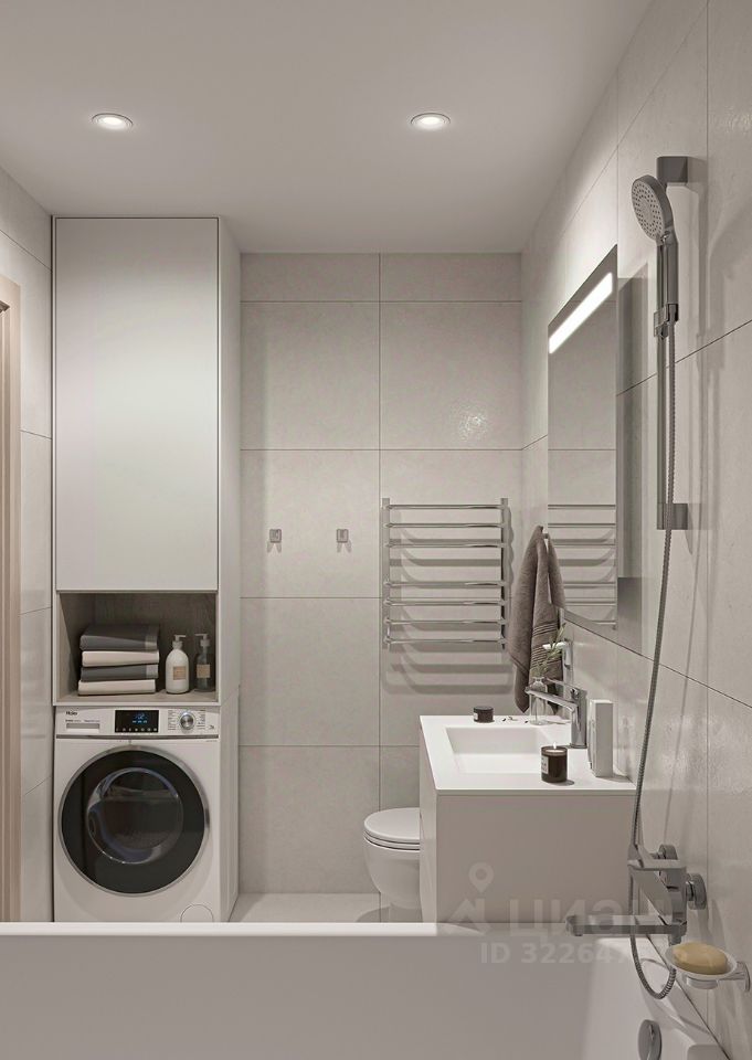 Санузел: раковина с тумбой, ванна или душевая кабина, унитаз, смесители. Выполнена полная разводка электропроводки.
