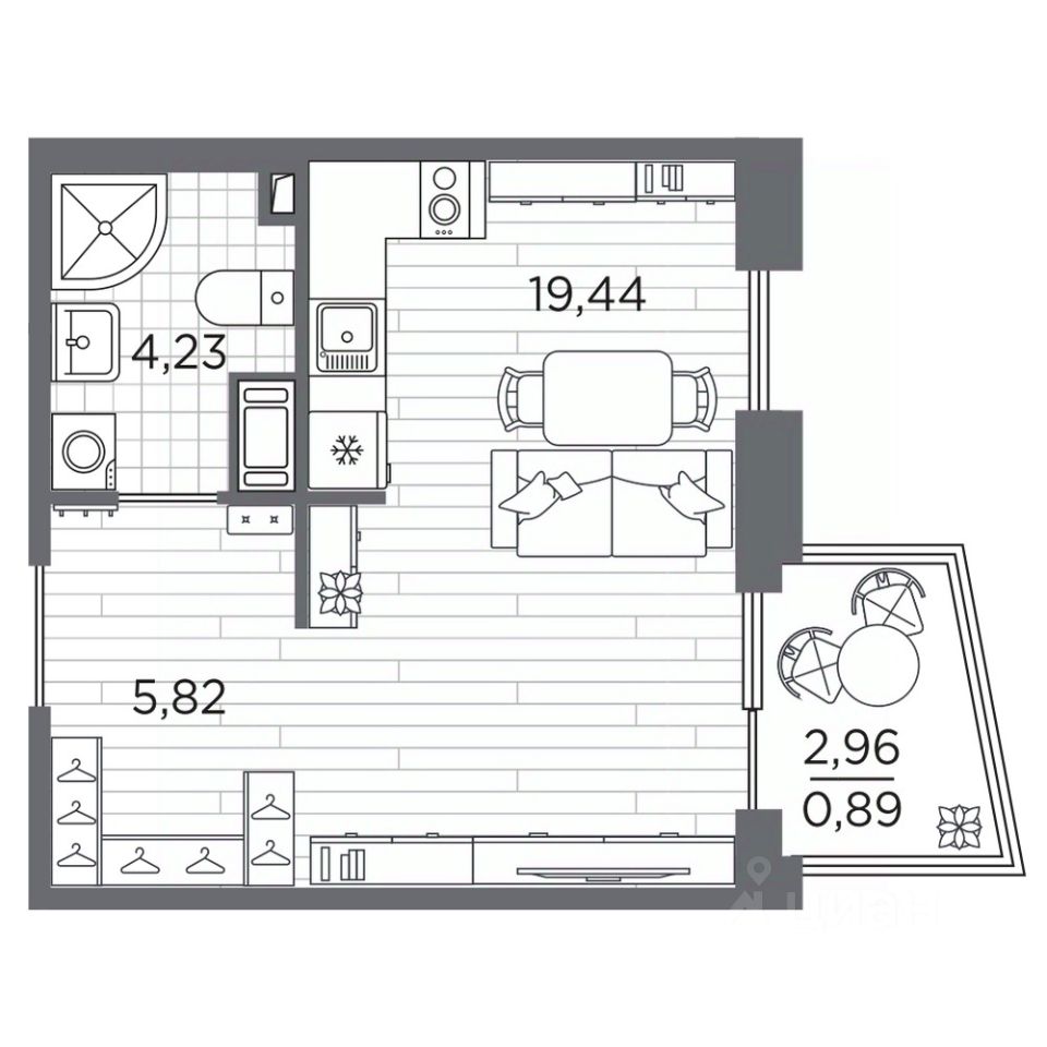 Продается однокомнатная квартира-студия с отделкой в ЖК "RESPECT" на 8 этаже. Общая площадь: 30.38 кв.м., площадь гостиной 19.44 кв.м., из которых 5 кв.м. выделено под кухонную зону. Все окна выходят на одну сторону. В квартире один балкон, один совмещенный санузел. Высота потолков 2.7 м.