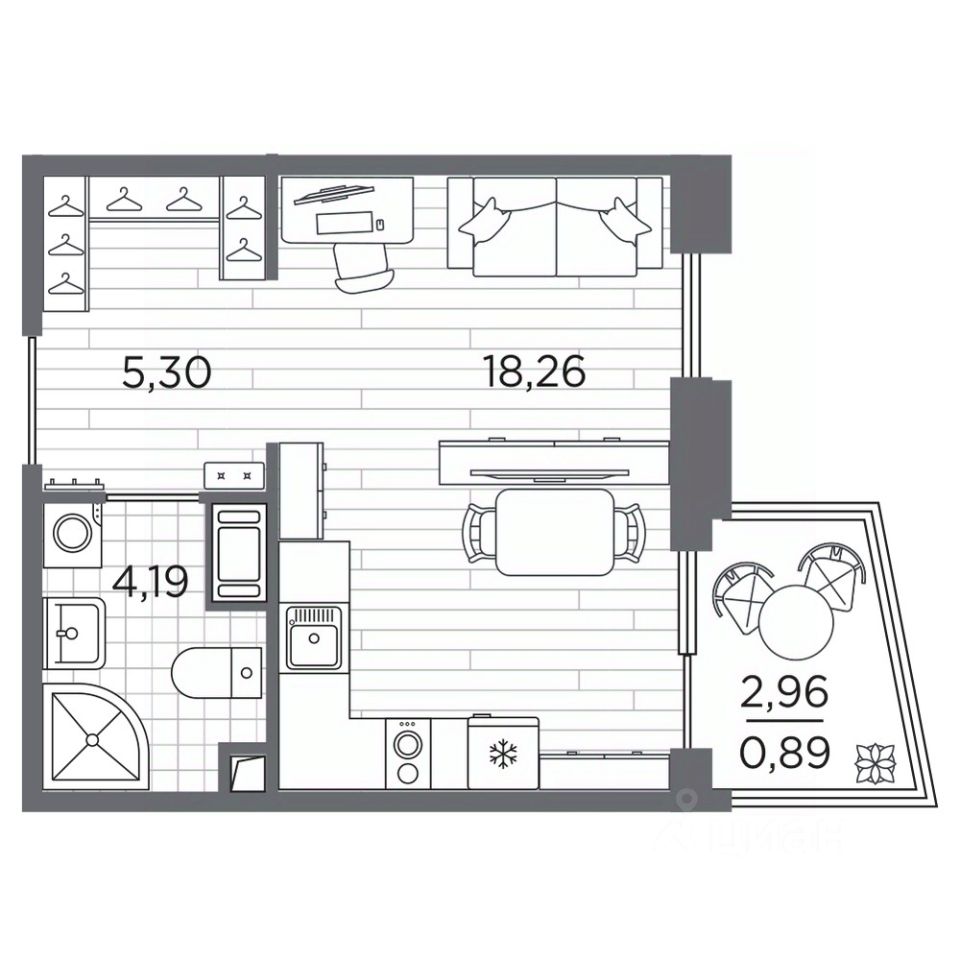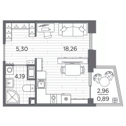 Просторная однокомнатная квартира-студия с отделкой в ЖК "RESPECT" на 8 этаже. Общая площадь: 28.64 кв.м., площадь гостиной 18.26 кв.м., из которых 5 кв.м. выделено под кухонную зону. Все окна выходят на одну сторону. В квартире один балкон, один совмещенный санузел. Высота потолков 2.7 м.