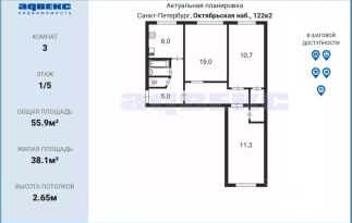 Сегодня предлагается к продаже отличная трехкомнатная квартира в Невском районе, в 10 мин езды на транспорте от ст. м. Ломоносовская и 12 минутах от ст.м. улица Дыбенко. Адрес: Октябрьская наб. д. 122, корп. 2.