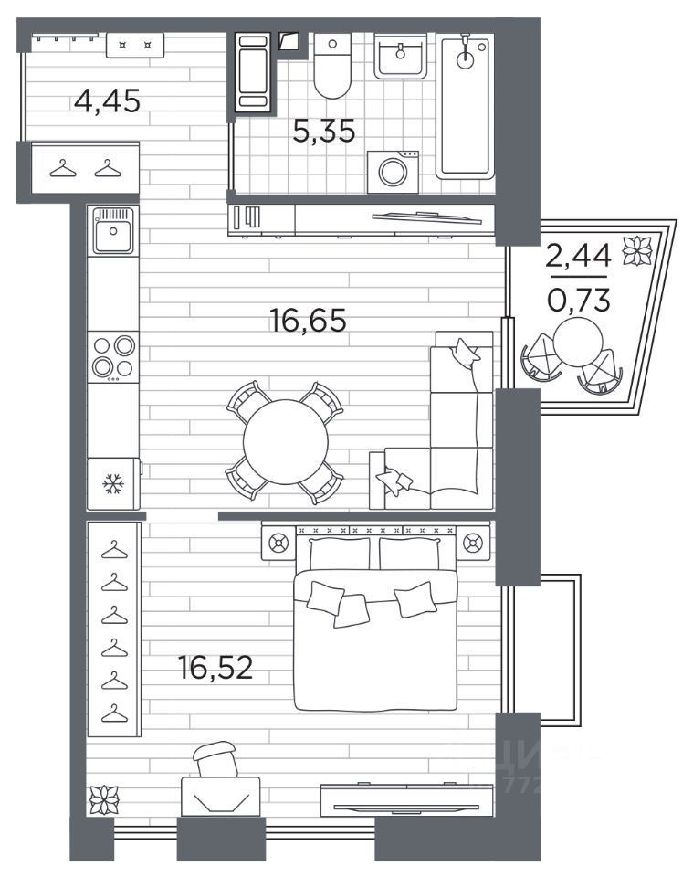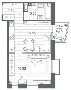 Продается 1-комн. квартира с отделкой в ЖК "RESPECT" на 11 этаже. Общая площадь: 43.7 кв.м., жилая: 16.52 кв.м., площадь просторной кухни-столовой: 16.65 кв.м. Квартира угловая, идеально подойдет любителям тишины и панорамных видов. В квартире один балкон, один совмещенный санузел. Высота потолков 2.7 м.