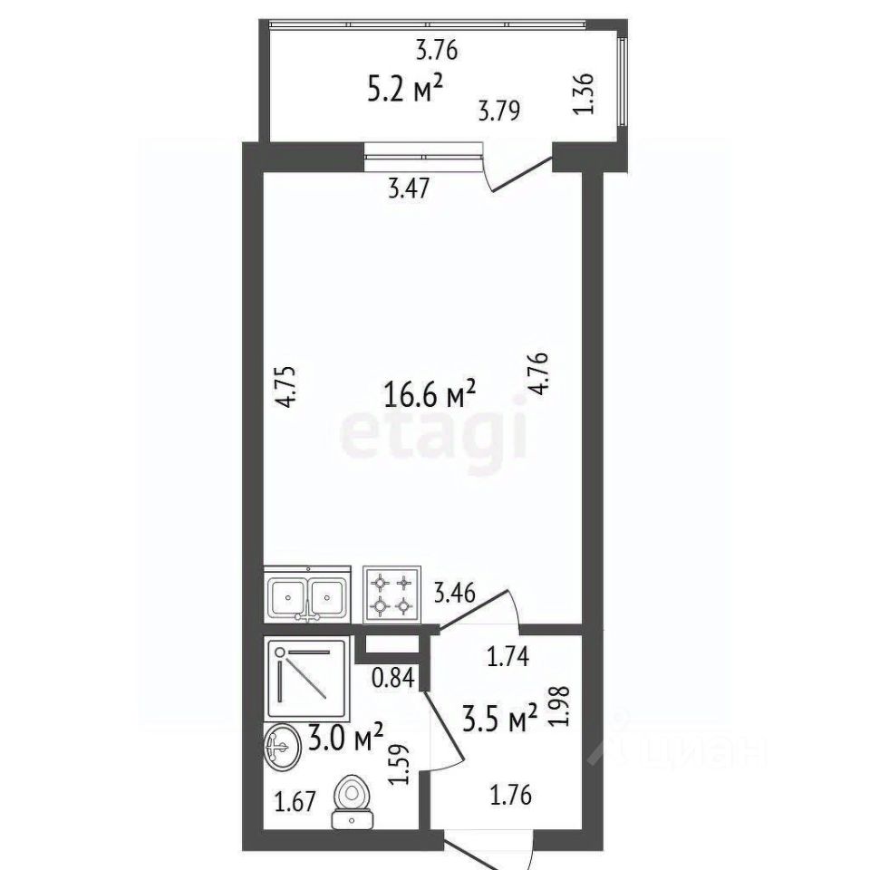 Продаётся студия с большой лоджией 5,2 кв.м, Комфортный жилой комплекс в стиле скандинавского минимализма от надёжного застройщика.