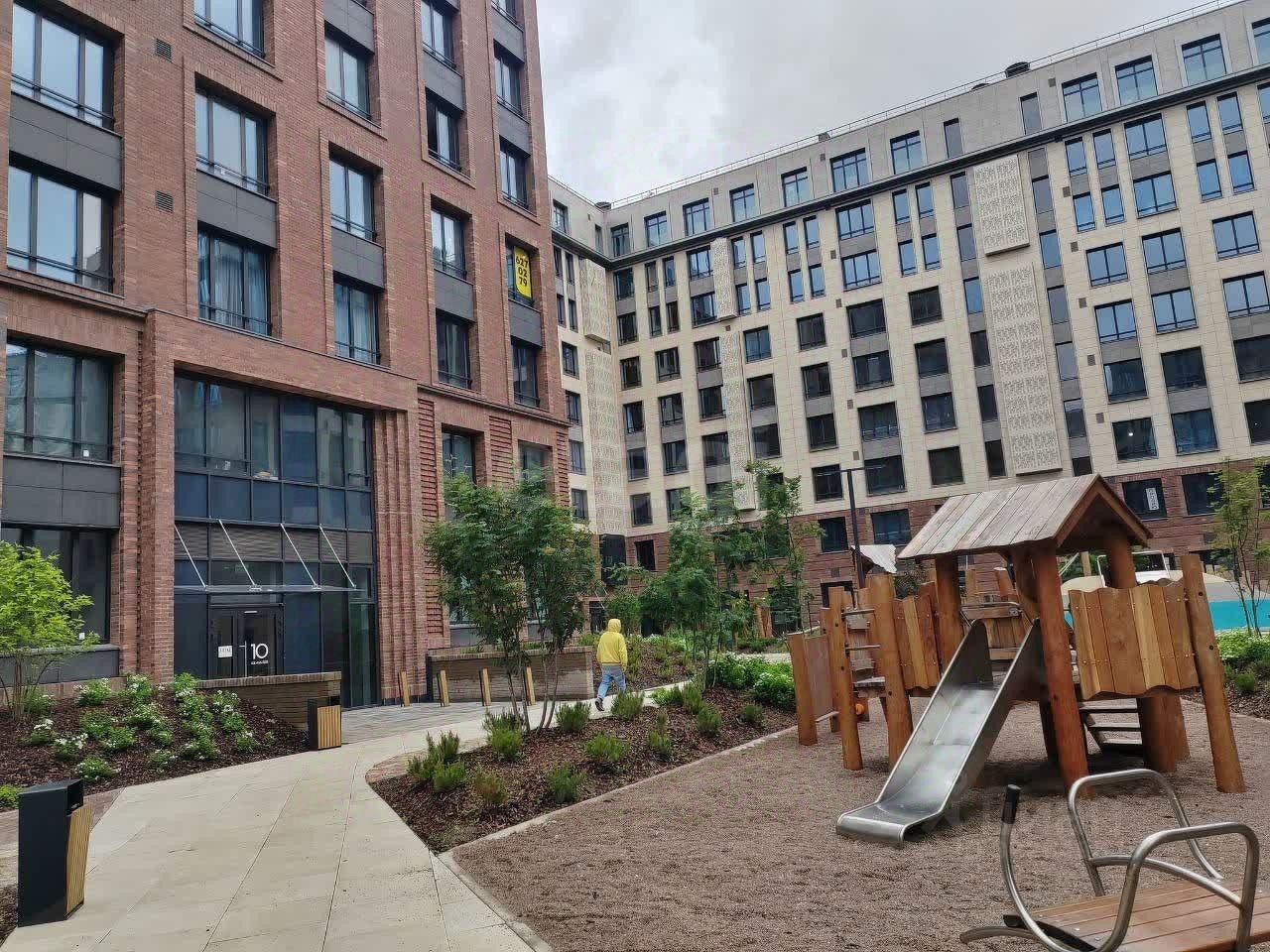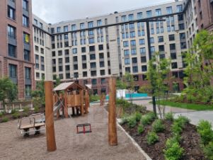 Жилой комплекс отличается безопасной и комфортной средой: закрытая территория без автомобилей, детские игровые площадки для разных возрастов. В шаговой доступности — Малоохтинский парк, а в нескольких минутах езды — Заневский парк. Ближайшие торгово-развлекательные центры "Охта Молл" и "Заневский Каскад" находятся в 6 минутах на автомобиле.
