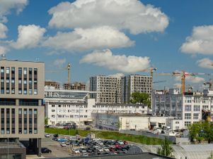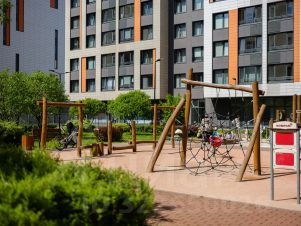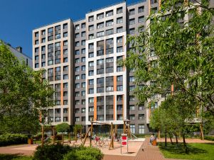Монолитный, теплый дом с отличной шумоизоляцией содержится в образцовом порядке. Светлая, просторная входная группа. Высокоскоростные лифты. Закрытый внутренний двор с детской и спортивной площадками, зонами отдыха. Видеонаблюдение. Вход в парадную — со двора и с улицы, есть тёплый подземный паркинг, где можно арендовать или приобрести парковочное место. Гостевая парковка возле дома. Свой детский садик во дворе.