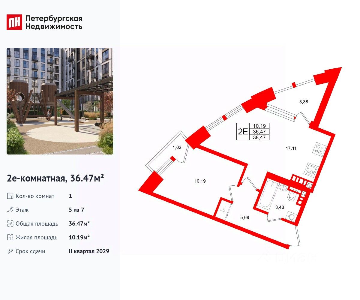 Удобная, классическая, функциональная европланировка, большая кухня-гостиная 17.11 м², просторная прихожая 5.69 м². Общая площадь квартиры - 36.47 м², жилая 10.19 м², высота потолка 3 м.