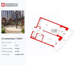 Удобная, классическая, функциональная европланировка, большая кухня-гостиная 17.5 м², вместительная прихожая 3.71 м². Общая площадь квартиры - 37.86 м², жилая 12.15 м², высота потолка 2.98 м.