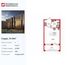 Удобная, классическая, функциональная европланировка, вместительная прихожая 2.87 м². Общая площадь студии - 24.49 м², жилая 18 м², высота потолка 2.75 м.