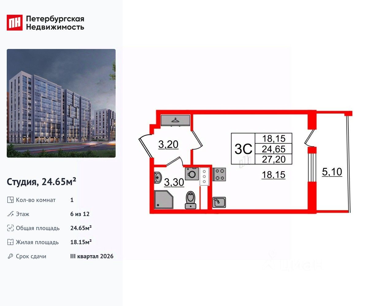 Продается просторная студия от застройщика в жилом комплексе "Бионика Заповедная" в динамичном Приморском районе.