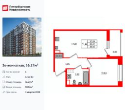 Удобная, классическая, функциональная европланировка, большая кухня-гостиная 17.26 м², просторная прихожая 5.05 м². Общая площадь квартиры - 36.27 м², жилая 10.04 м², высота потолка 3 м.