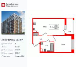 Удобная, классическая, функциональная европланировка, большая кухня-гостиная 17.26 м², просторная прихожая 5.05 м². Общая площадь квартиры - 36.59 м², жилая 10.04 м², высота потолка 2.77 м.