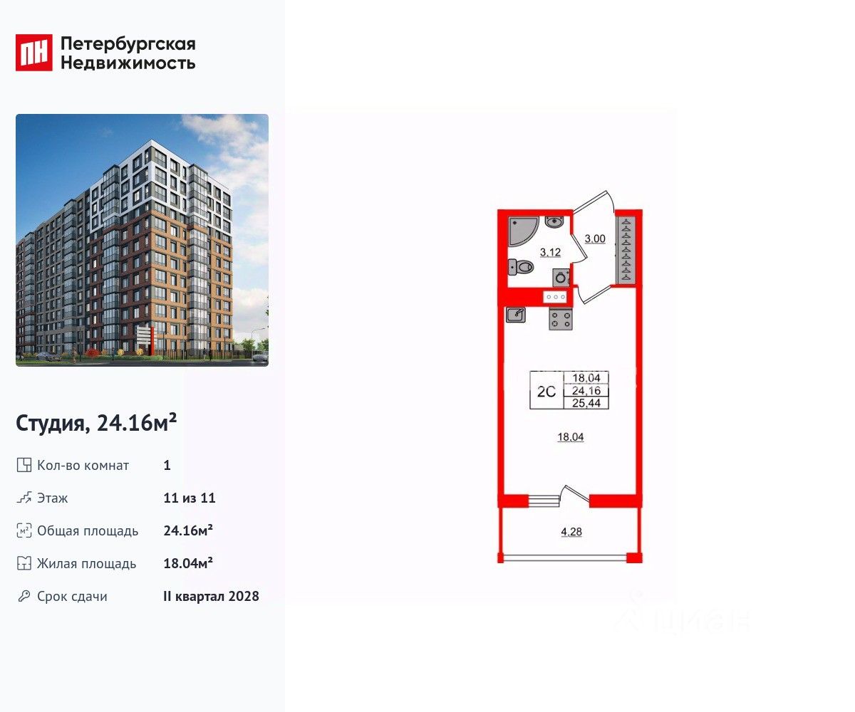 Удобная, классическая, функциональная европланировка, вместительная прихожая 3 м². Общая площадь студии - 24.16 м², жилая 18.04 м², высота потолка 3 м.