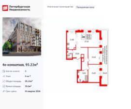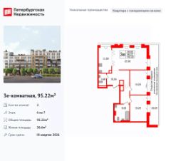 Уникальная, функциональная европланировка, большая кухня-гостиная 11.09 м², просторная прихожая 15.54 м². Общая площадь квартиры - 95.22 м², жилая 56.6 м², высота потолка 3 м.