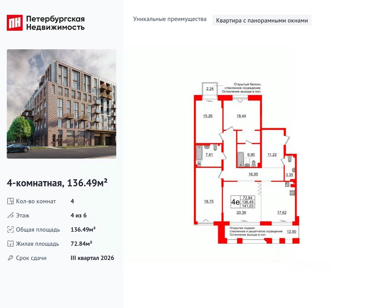 • Панорамные окна, открытые террасы, вантовые балконы.