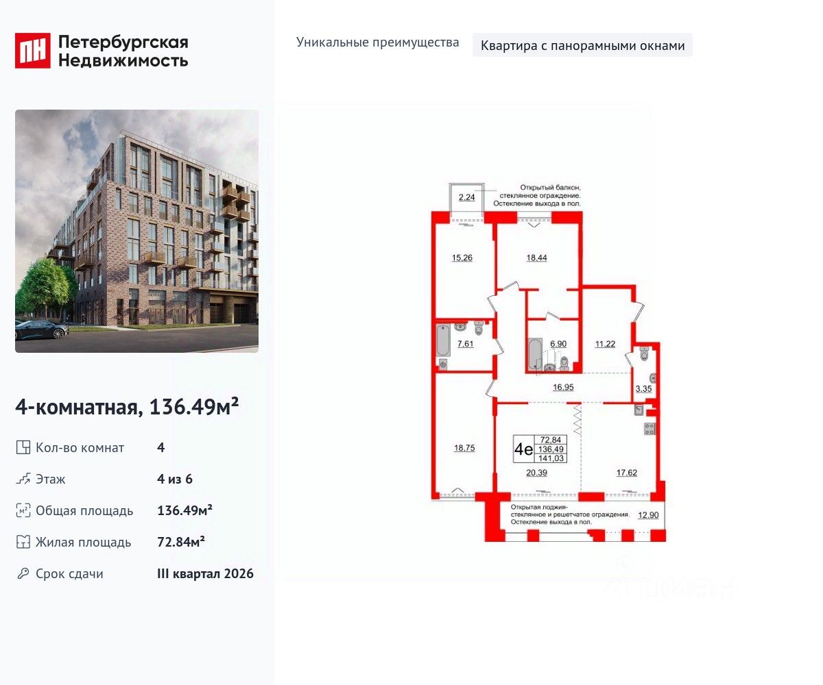 Уникальная планировка, кухня 17.62 м², просторная прихожая 11.22 м². Общая площадь квартиры - 136.49 м², жилая 72.84 м², высота потолка 3 м.