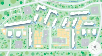 Между домами будут устроены бульвары, пешеходные и велодорожки, игровые и спортивные площадки, зоны отдыха для детей и взрослых. На первых этажах находятся колясочные, магазины, кафе и сервисные службы.