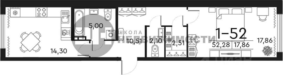 Планировка квартиры очень удобная: просторная комната и кухня-гостиная делают эту квартиру идеальной как для одного человека, так и для молодой семьи. Черновая отделка позволит новому владельцу воплотить в жизнь свои дизайнерские идеи и желания.