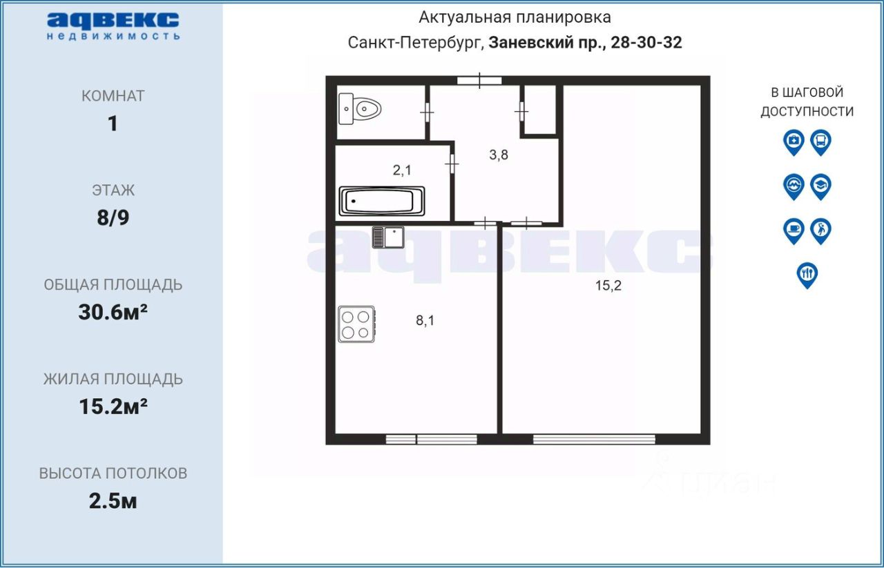 Продаётся светлая квартира с ориентацией окон на юго-восток в 6 минутах ходьбы от станции метро Новочеркасская или в 16 минутах ходьбы от Ладожского вокзала.