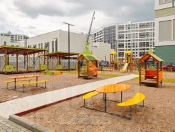 - В пешей доступности работают магазины, отделения почты и банков, кафе и рестораны, а также медицинские центры. Для детей предусмотрены детские площадки KOMPAN.