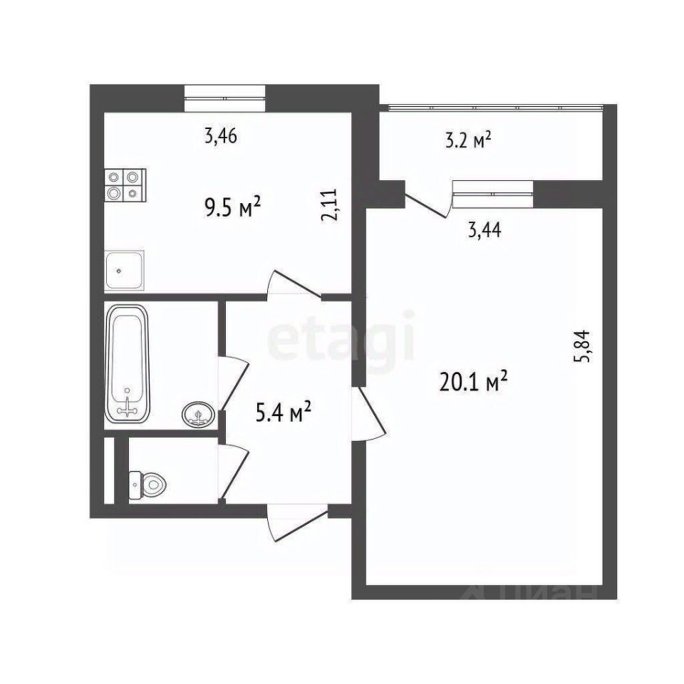 Уютная кухня с диваном станет любимым местом для отдыха, а изолированная большая комната — вашим личным пространством.
