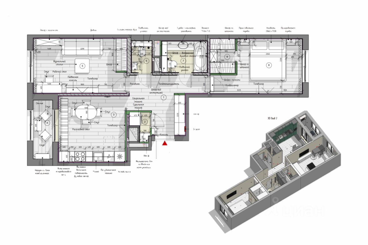 Предлагаем 2-комн. квартиру с новым качественным ремонтом по дизайн-проекту, с 2 изолированными комнатами, кухней-столовой с выходом на лоджию, 2 санузлами, отдельной постирочной и гардеробной