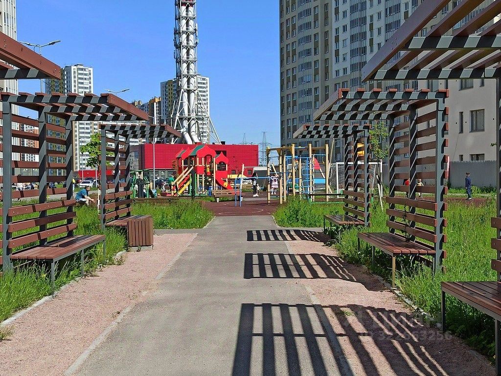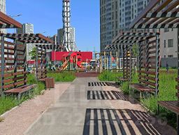 Вход в парадную на уровне земли, выход на две стороны дома. Три лифта (2 пассажирских и грузовой). Во дворе дома расположены детская и спортивная площадки с современным безопасным покрытием, зона отдыха для жителей, детский сад; школа во дворе соседнего дома. Ближайшие продуктовые магазины в нескольких минутах ходьбы.