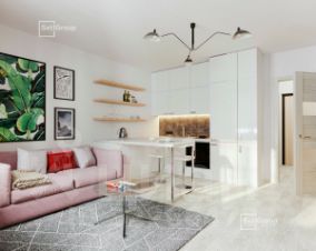 Удобная, классическая, функциональная европланировка, вместительная прихожая 3.03 м². Общая площадь студии - 24.3 м², жилая 18.02 м², высота потолка 2.77 м.