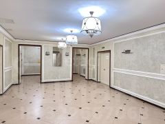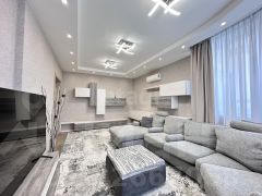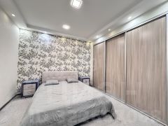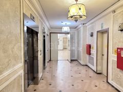 Высота потолков 2,8 метра создает ощущение простора, а панорамные окна во двор обеспечивают тишину и отсутствие уличного шума. Квартира с дизайнерским ремонтом премиального уровня: качественная отделка, продуманная планировка и функциональные решения.