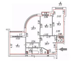 Трехкомнатная квартира площадью 106,1 кв.м расположена на 6 этаже 17-этажного монолитного дома, построенного в 2016 году на Московском проспекте в Санкт-Петербурге.