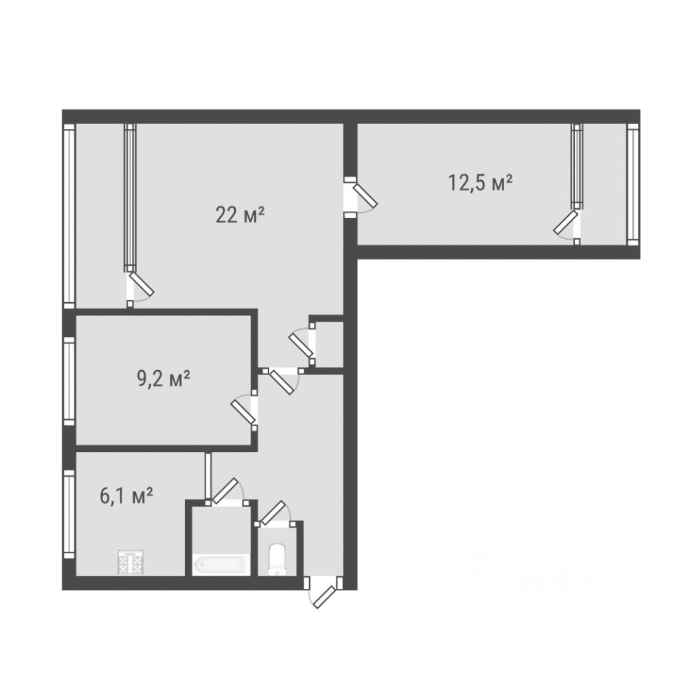 - Жилая площадь 40,6 (9,2+22+12,5) м²
