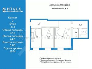 98083913 Продается 2 к.кв. 47,6 м2 у набережной Лейтенанта Шмидта!О доме:Дом культурного наследия дореволюционной постройки с капитальным ремонтом. Перекрытия все железобетонные, стены кирпичные. В парадной всего лишь 13 квартир.О квартире: На этаже всего две квартиры. Квартира светлая, теплая. Шума улицы не слышно.Просторный коридор 6,7 м2, комнаты 15,6+9,0 м2, кухня 6,3 м2, также есть еще один прямоугольный коридор 5,4 м2, в котором можно обустроить гардеробную. О местоположении:Дом расположен в тихом переулке, рядом школа в 1 минуте ходьбы, через дорогу детский сад.Рядом с домом в двух шагах великолепная набережная, с которой открывается вид на все достопримечательности Санкт-Петербурга. Все салюты и мероприятия проходящие в городе будут в шаговой доступности для Вас!До Академии Художеств 6 минут пешком, до Стрелки Васильевского острова и Дворцовой площади 7 минут на транспорте.О сделке:Без обременений. Вся сумма в договоре. Один взрослый собственник. Встречная покупка. Торг.Звоните, если хотите обрести квартиру рядом с центром города!