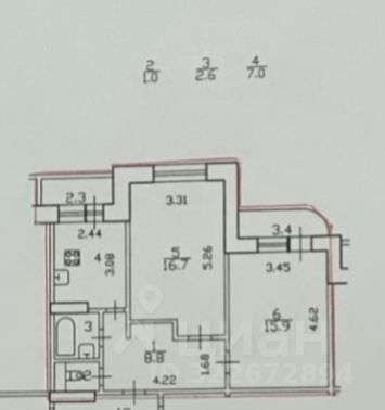 Продается доля в 2х комнатной квартире. Доля в собственности более 10 лет, взрослый собственник. Вторая доля принадлежит другому взрослому собственнику. В квартире 2 комнаты, почти равной площади. Комната на фото предлагается к продаже (на плане правая комната с балконом), во второй комнате проживает женщина (второй собственник).