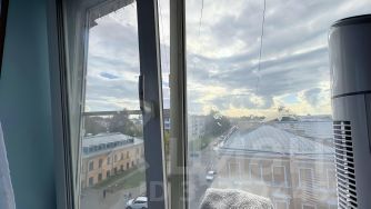 Вид из окон на улицу, позволяющий наслаждаться городскими пейзажами.