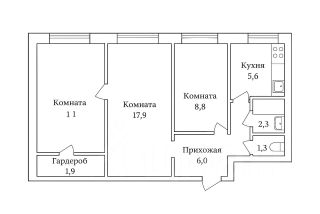 Продаётся трехкомнатная квартира общей площадью 55 квадратных метров на первом этаже пятиэтажного кирпичного дома, расположенного в спокойном районе Санкт-Петербурга.
