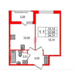 Видовая квартира! Площадь: 32,68 м², жилая 15,14 м², потолки 2,7 м много воздуха и пространства! 10 этаж.